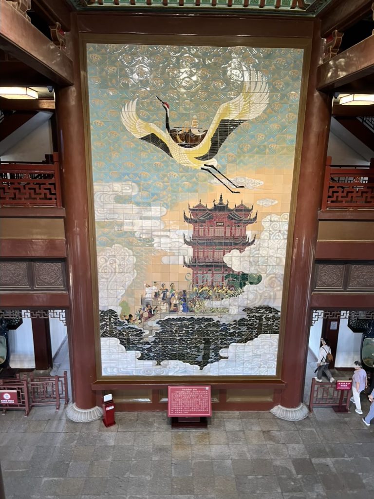 La torre mide 51.4 metros, dividida en cinco pisos, cada uno con exhibiciones de 书法 shūfǎ: caligrafía, poemas clásicos de  李白 lǐ bái y 崔颢 cuī hào. Las vistas panorámicas del río Yangtsé y el Puente 武汉  wǔhàn desde cada piso son espectaculares. Los jardines abergan réplicas de grullas, pabellones tradicionales y una 钟 zhōng: campana que los visitantes pueden tocar por buena suerte.